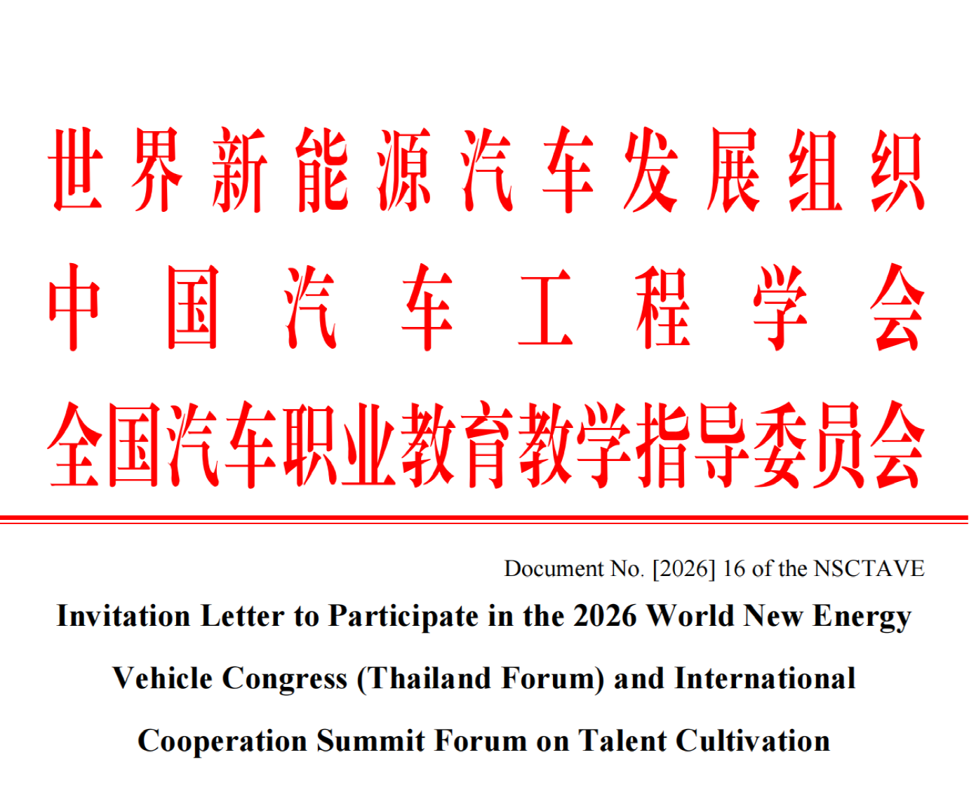 Invitation letter to Participate in the 2026 World New Energy Vehicle Congress (Thailand Forum) and International Cooperation Summit Forum on Talent Cultivation( [2026] 16 of the NSCTAVE).pdf